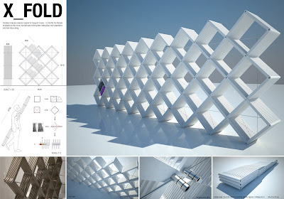 The X-FOLD foldable book-case system adresses the contemporary urban dweller.